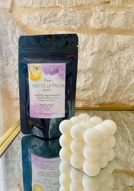 Ingrédients Thé vert BIO Fruit de la passion : thé vert (46%), arôme naturel de fruit de la passion, betterave, écorces d'oranges, fleurs de souci.