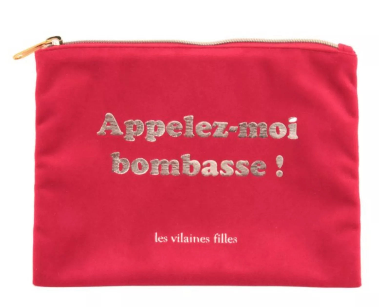 - Une pochette en velours rouge à message "Appelez-moi Bombasse !"