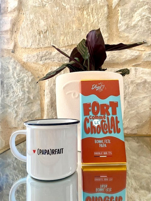 Une tasse chic et sobre à message, ça fera forcément plaisir à votre père ! Qui a dit que les hommes n'aimaient pas les messages adorables ? En plus si vous ajoutez du chocolat avec...c'est un sans faute !